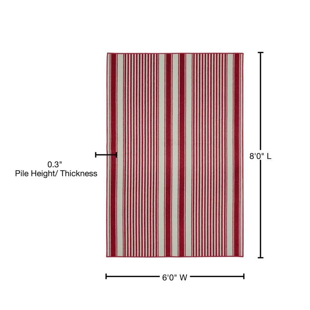 The Garland Rug 6 ft. x 8 ft. Area Rug offers style and comfort to your home. This rug features a striped motif for a classic appearance that won’t date. It is designed with red elements, incorporating a fun and colorful atmosphere into any room. It has a 100% polypropylene design, making it a lasting option for any living space.