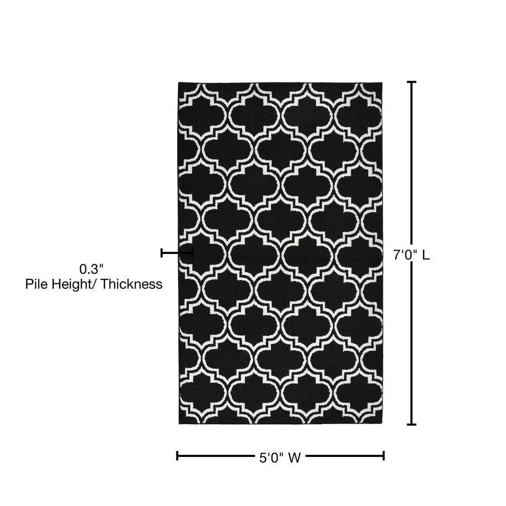 This Garland Rug 5 ft. x 7 ft. Area Rug will be a great welcoming touch to your home. This rug comes in a black shade, adding a touch of elegance to your flooring. With a trellis motif, it will mimic window panes, achieving a clean vibe. It has a 100% polypropylene design, making it a durable option with remarkable longevity.