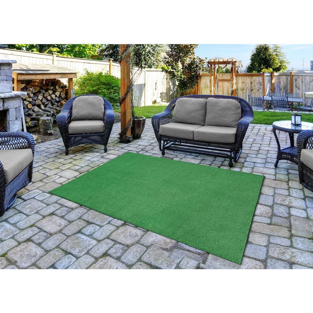 Softscapes, by Garland Rug, is the durable yet softer alternative to itchy turf and artificial grass rugs. This weatherproof rug comes in a variety of sizes. Softscapes is lightweight enough to roll and carry along for picnics, camping or pack in the RV for use as a travel rug. Children, pets and bare feet will appreciate the soft feel. Rug will ship folded in a box. Fold marks will disappear after a few days. Please Note that size and color representation are subject to manufacturing variance and may not be exact. Also note that monitor settings may vary from computer to computer and may distort actual colors. Photos are as accurate as possible; however, colors may vary slightly in person due to flash photography and differences in monitor settings. Each rug/carpet is manufactured with the same colors as pictured; however, they can be manufactured from slightly different “dye lots”. Meaning when the yarn is dyed it can vary in shade ever so slightly.