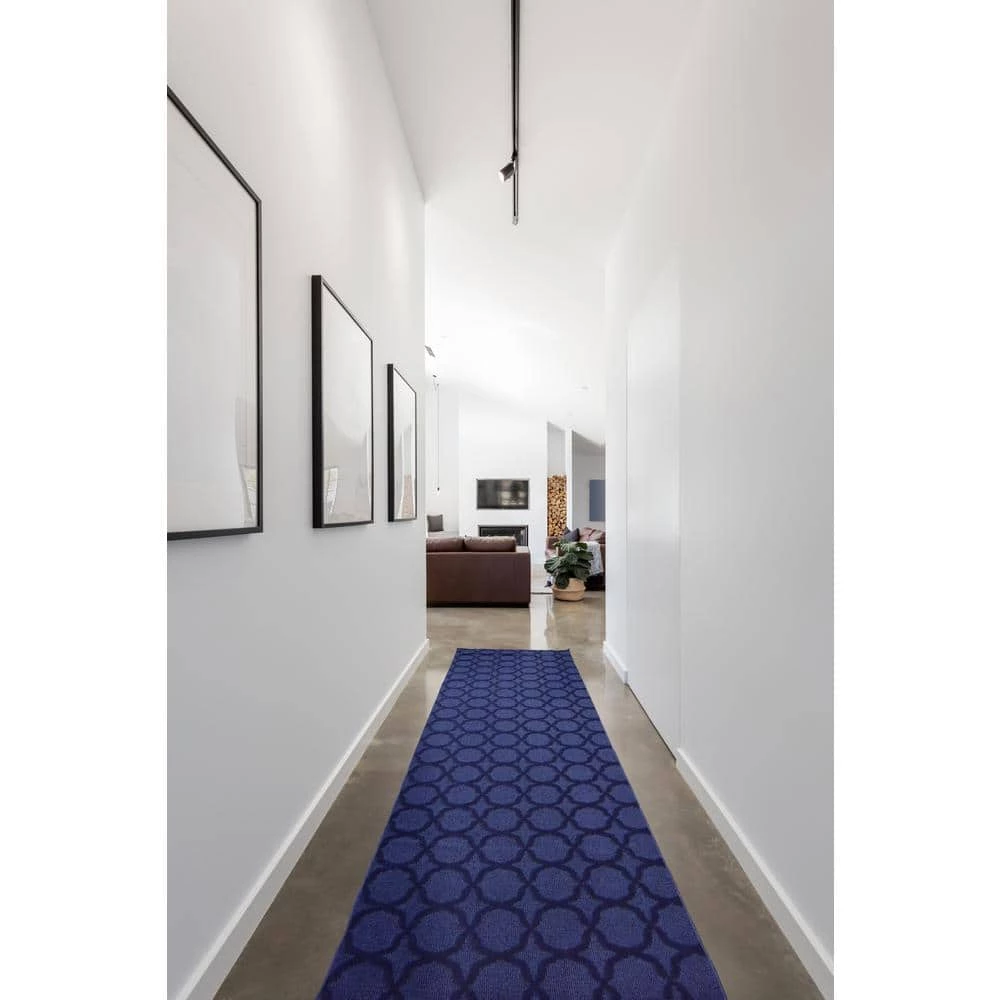 Sparta Navy 2 ft. x 12 ft. Trellis Runner Rug by Garland Rug